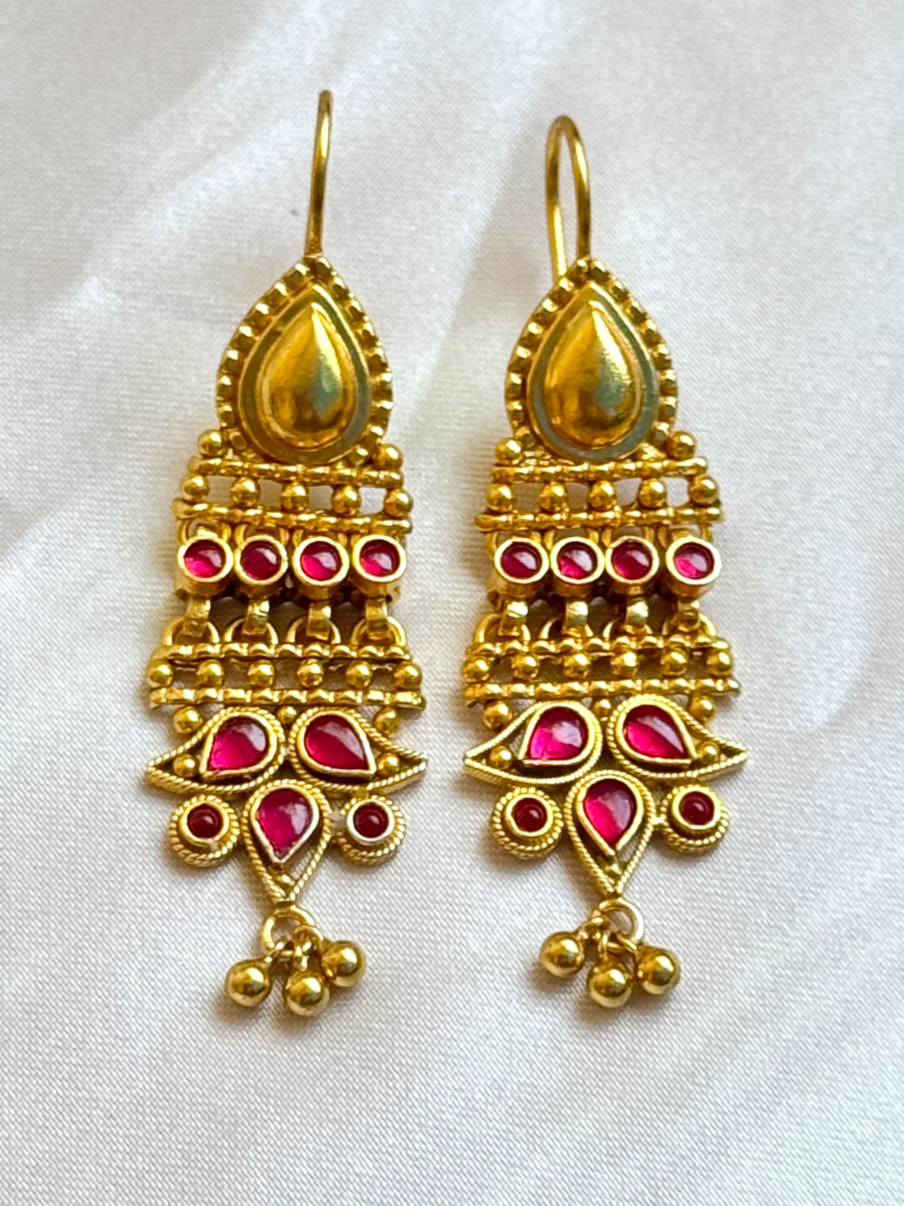Gemstones used:Â kempu stone (also known as spinel or Zircon).