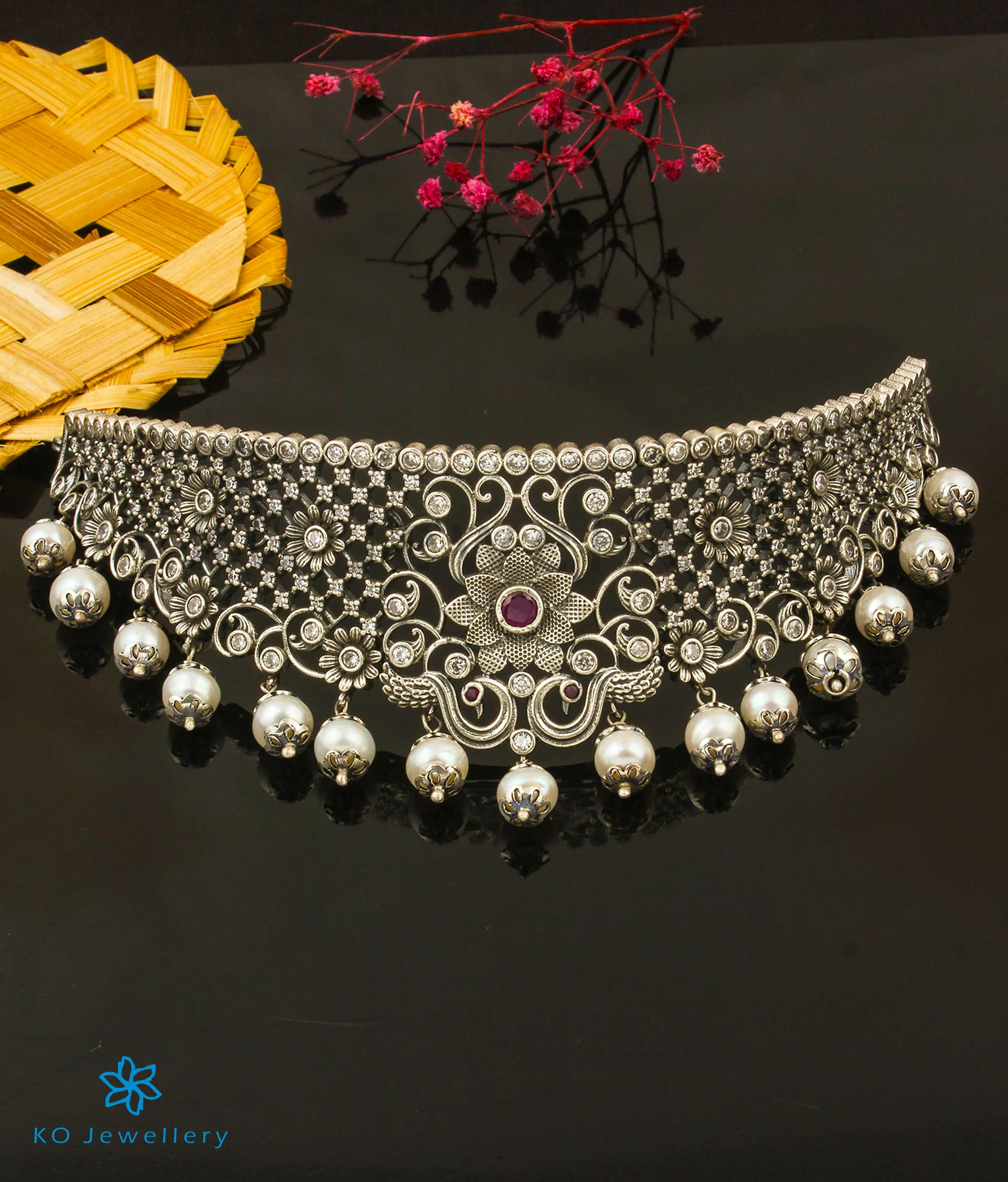 Gemstones used:Â kempu stone (also known as spinel or Zircon), natural Pearl.