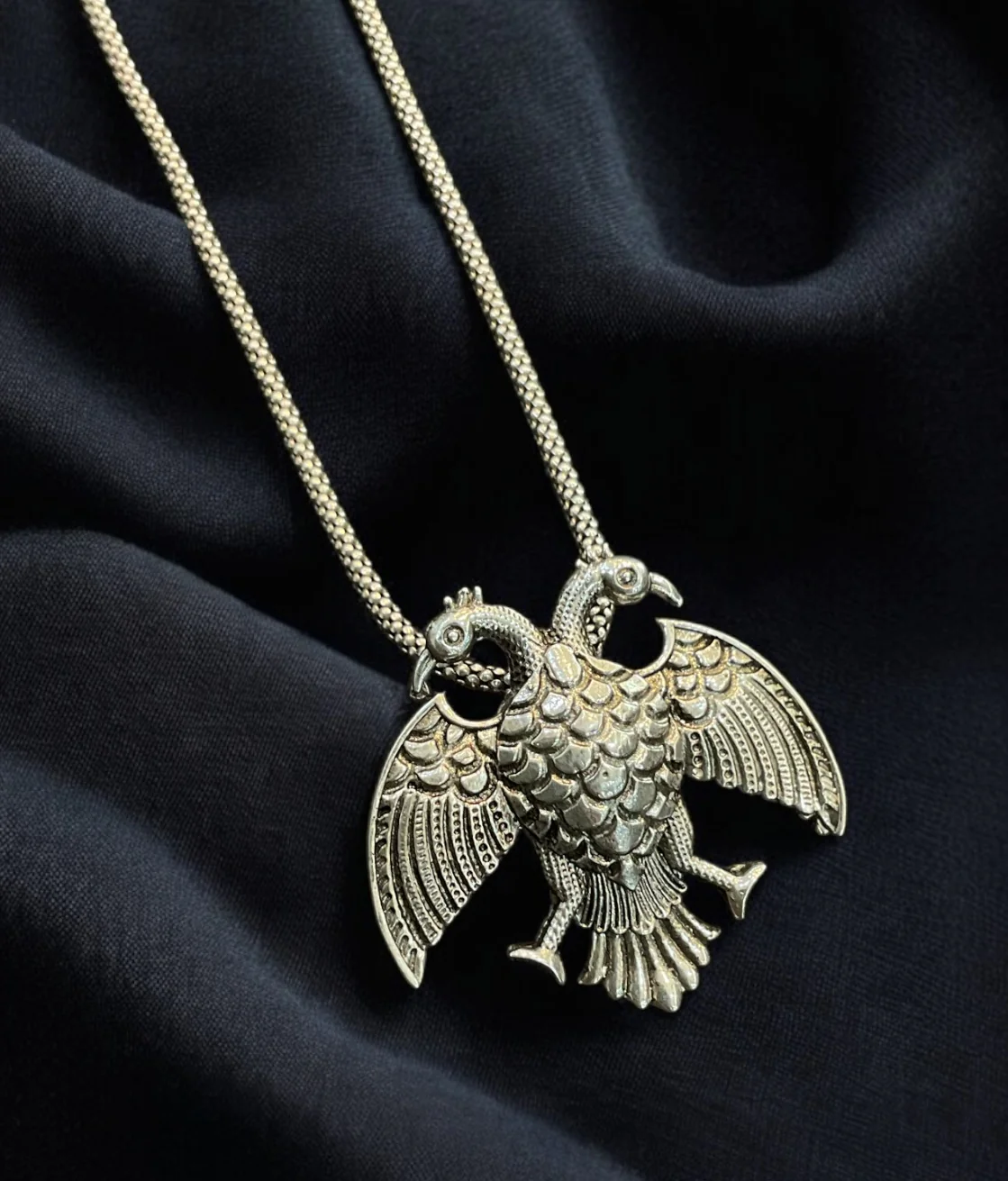 The Dvirupa Gandaberunda Silver Pendant/Brooch (Big/Oxidised)