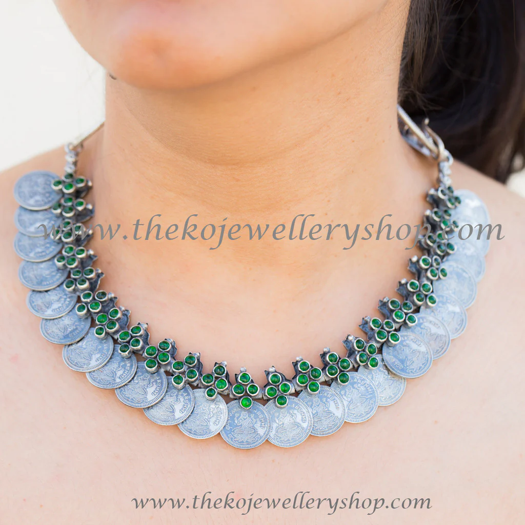 The Medhavin Antique Silver Coin Necklace(oxidised)